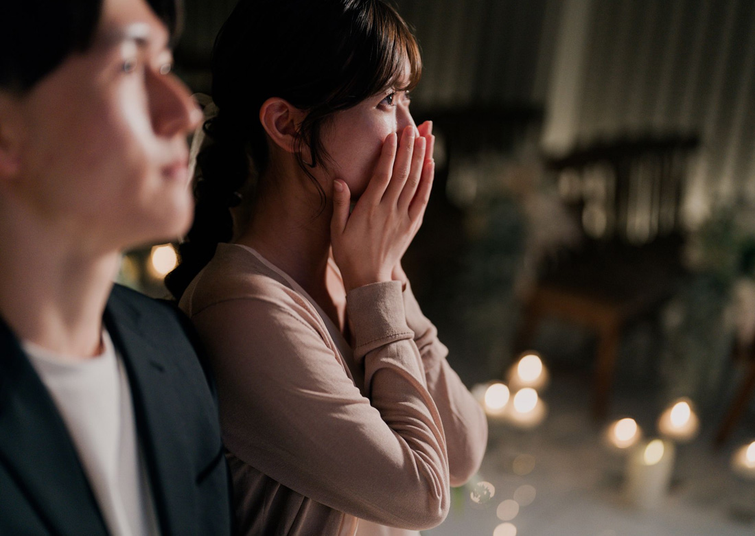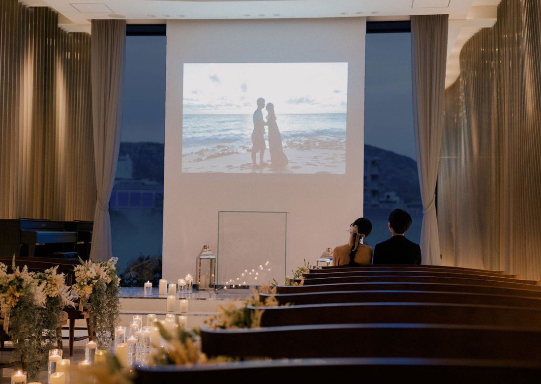 プロポーズの舞台は、鴨川沿いに佇み、窓からは夜の京都の街並みを望むチャペル。